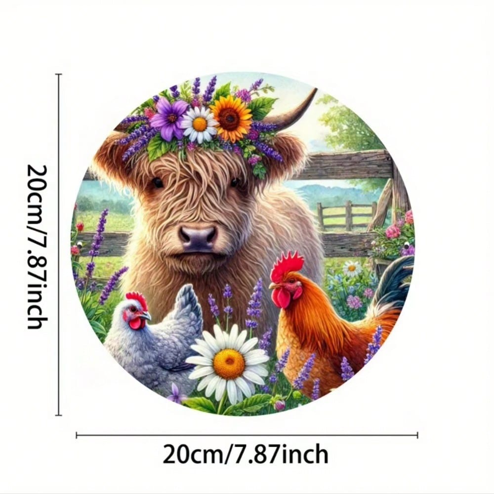 Highland Cow Chicken Metal Wall Art Waterproof Rustproof Home Room Decor