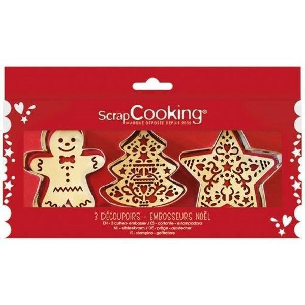 Coffret de 3 découpoirs et embosseurs bois - scrapcooking - noël (bonhomme de pain d'épice, sapin et étoile)