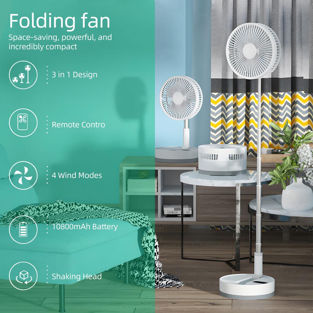 9-inch Portable Fan 10800mAh Battery Type-C Rechargble Oscillating Standing Fan with LED Night Light Remote Control Telescopic 4 Speed Quiet