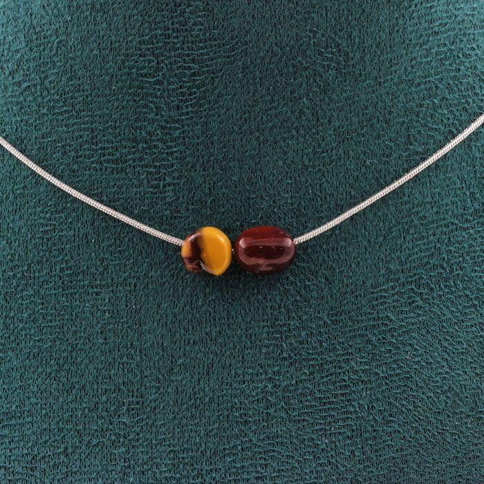 Pierres et Minéraux. Collier 2 perles Mookaite d'Australie. Chaine en acier inoxydable Collier femmes, hommes. Taille personnalisab