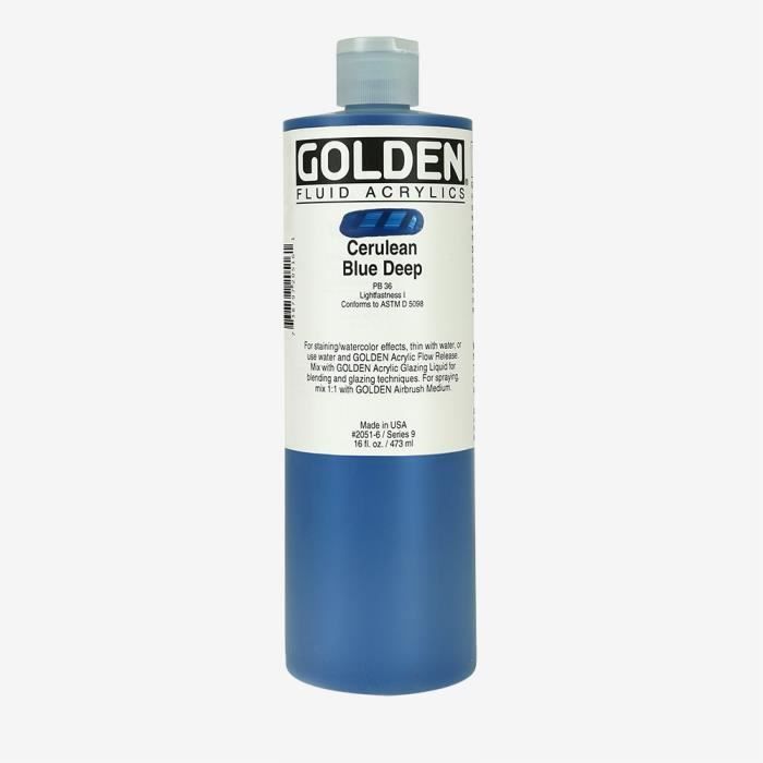 Peinture Acrylique Liquide - GOLDEN - Cerulean Blue Deep IX - 473ml - Haute résistance - Flexibilité