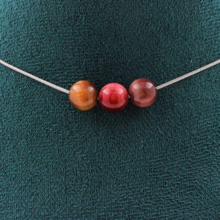 Pierres et Minéraux. Collier 3 perles Oeil de Tigre pêche bicolore 8 mm. Chaine en acier Collier femmes, hommes. Taille personnalis