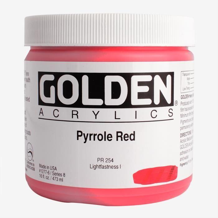 Peinture Acrylique - GOLDEN - Pyrrole Red - 473ml - Rouge - Haute Résistance à la Lumière