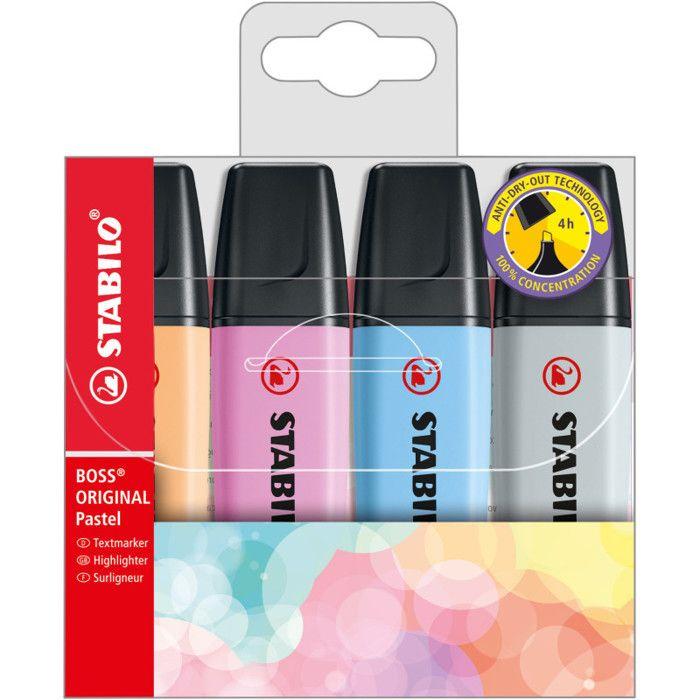 Surligneur - stabilo - boss original - pastel - étui de 4 - pointe biseautée