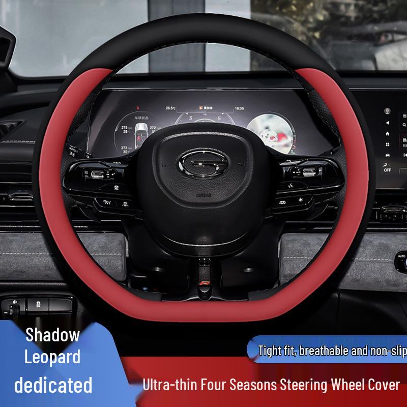 GAC Trumpchi Shadow Leopard Nappa Leather Steering Wheel Cover - Anti-slip, Sweat-absorbing, All-Season Universal Fit
