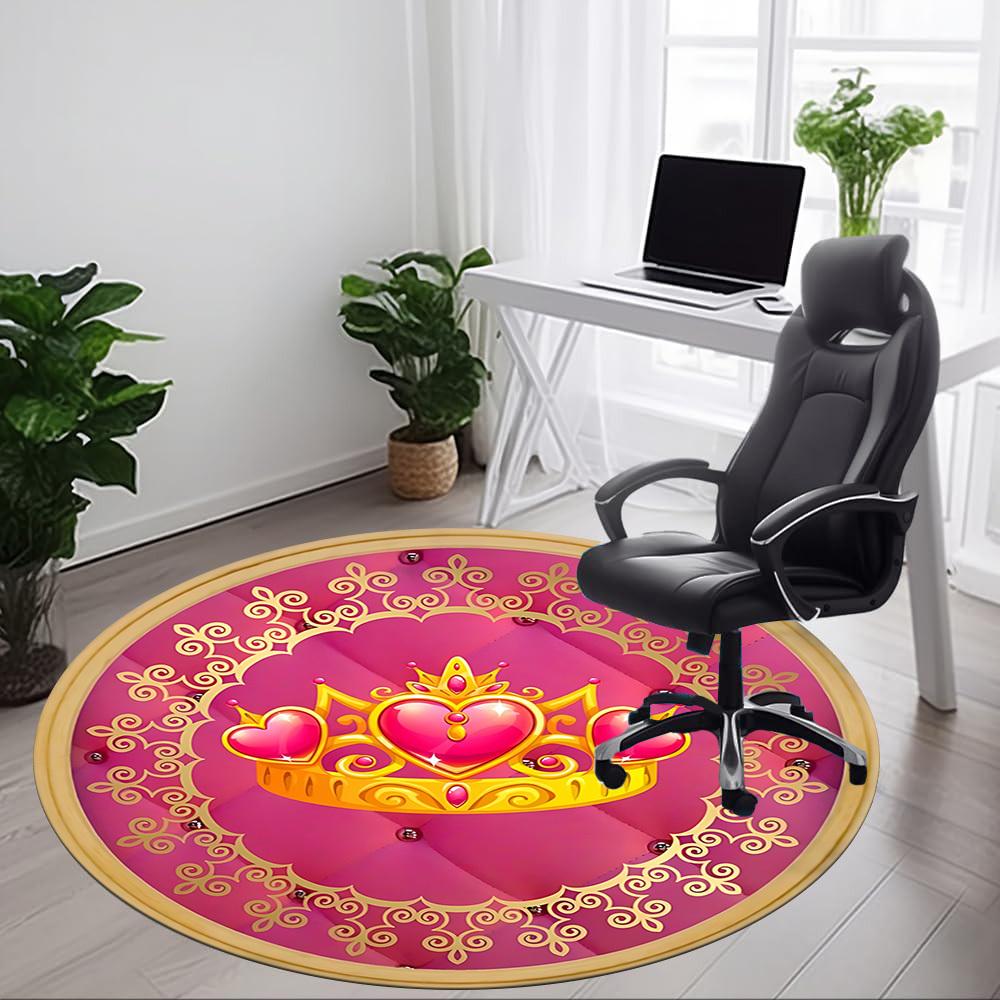 1pc Crown HeartChair Carpet for Office, Indoor Non-Slip Washable Polyester Fiber Carpet, Mat For Office, Machine Washable