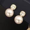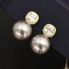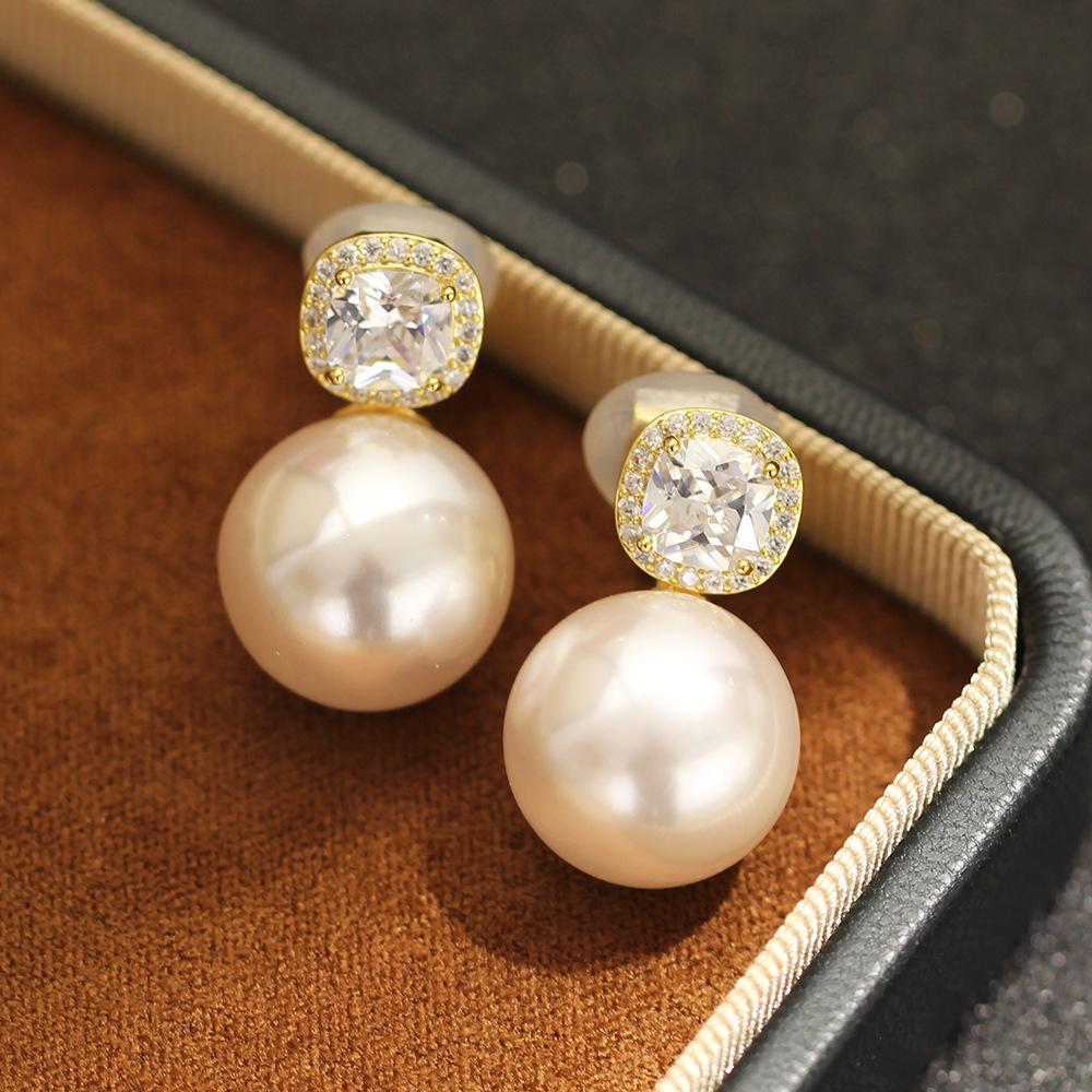 Princess square stone-set large pearl earrings, gold-plated multi-color 925 silver needle earrings, versatile without pierced earrings, earrings for