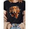 European sizes Women's Casual Short Sleeve T-Shirt with Playful Dachshund Peeking Through Torn Hole Graphic - Soft Stretch Polyester