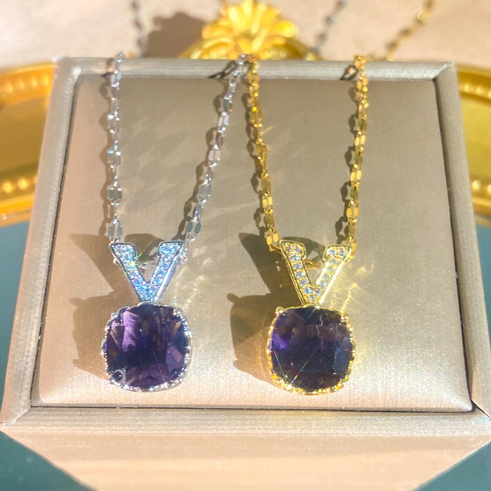 Explosive V-shaped Geometric Square Diamond Pendant Necklace for Women, Simple and Hot Selling Creative Collarbone Chain