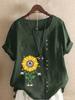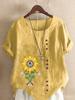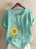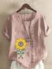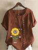 Women's Fashion Abstract Sunflower Print Casual Cotton Linen Short Sleeve Round Neck T-shirt Shirt Leisure Loose Summer Blouse Tops