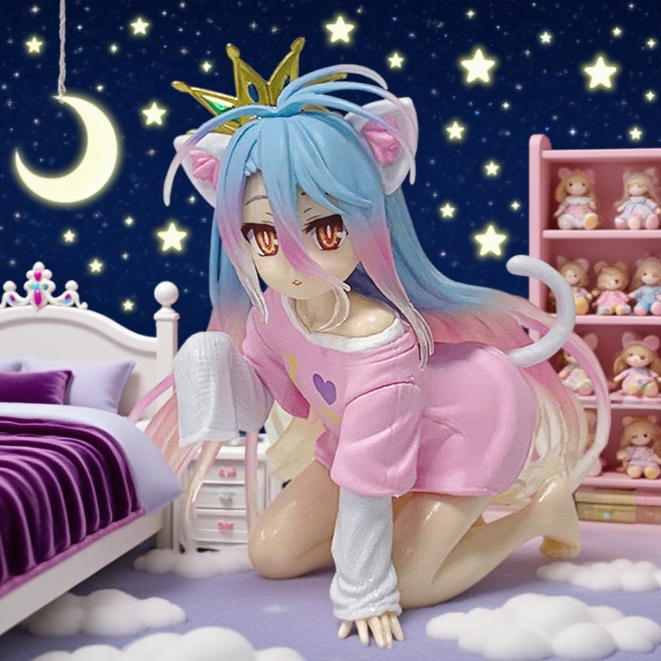 10cm In Stock Anime No Game No Life: Zero Shiro Desktop Cute Figure White To Cat Ear T-Shirt Model Toy Figures Ornaments Gifts