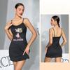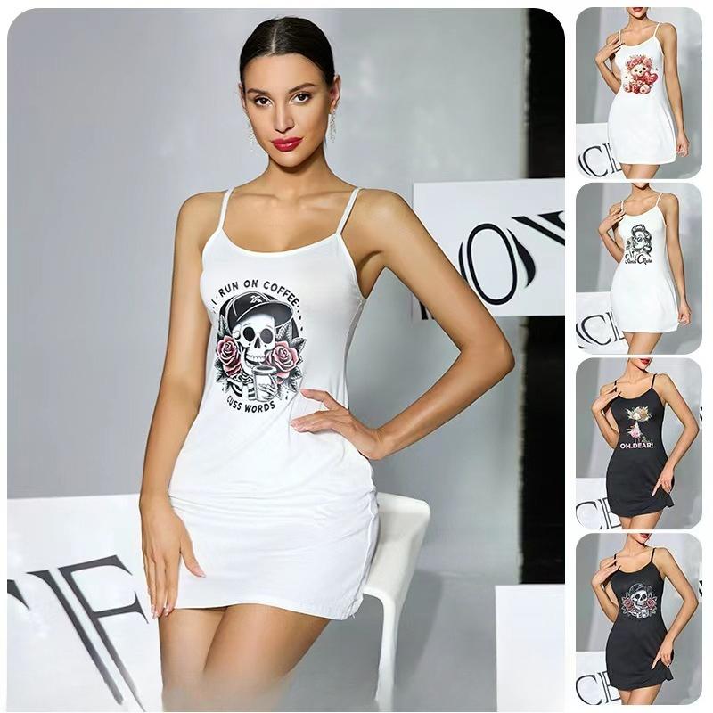 Multi-Pattern Short Cami Nightgown Unique Print Black/White Women's Loungewear 929 Trendy Versatile Sleepwear with Bold Print Choices