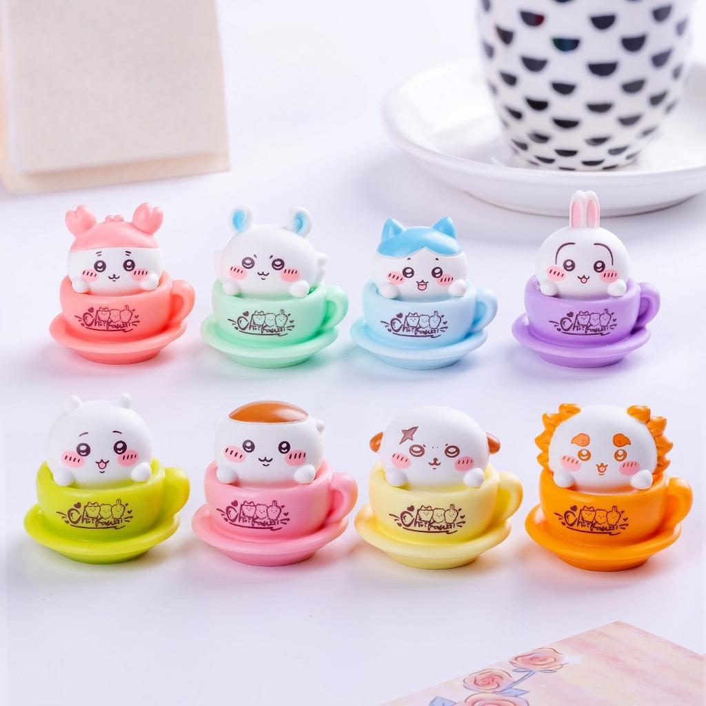 Cute Chiikawa Figures Mini Teacup Toy Set Hachiware Usagi Momonga Lion Desk Decoration Collectible Kawaii Ornaments Gift