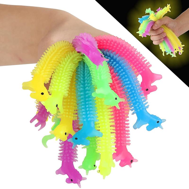 This sensory fidget toy set including cute bumpy unicorn Noodles, 6 colors. Great Stress Reliever Toy for Kids with ADD, ADHD or Autism, and Adults to Increase Focus Patience.