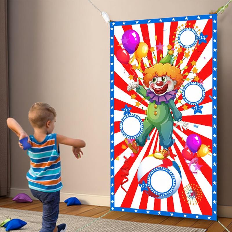2. Toss the bean bags through the open holes in the banner, each player gets 3 chances.