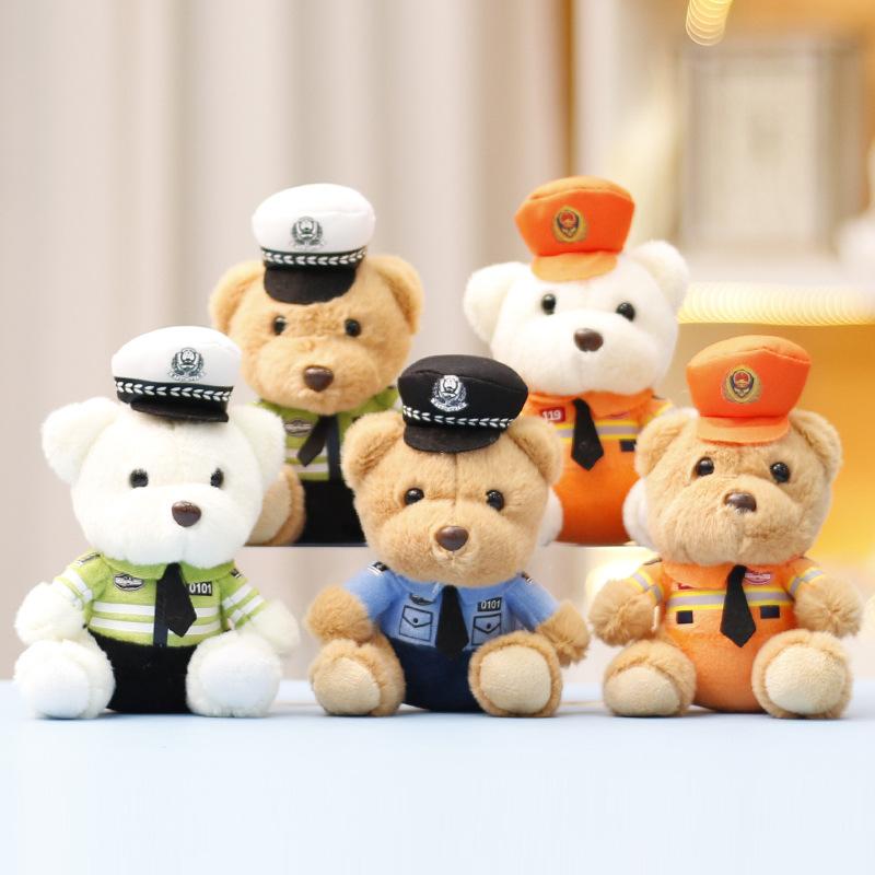Cute Bear Toy Keychain Traffic Police Themed Bear Plush Toy Stuffed Doll Soft Plush Pendant Charm For Car Backpack Decor Gift