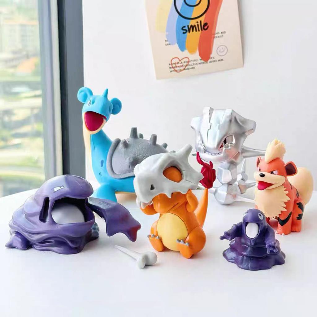 8cm Cartoon Charmander Model Wear A Cubone Helmet Anime Figure Pokemon GK Boy Collection Desktop Decoration Ornament Toy Gift