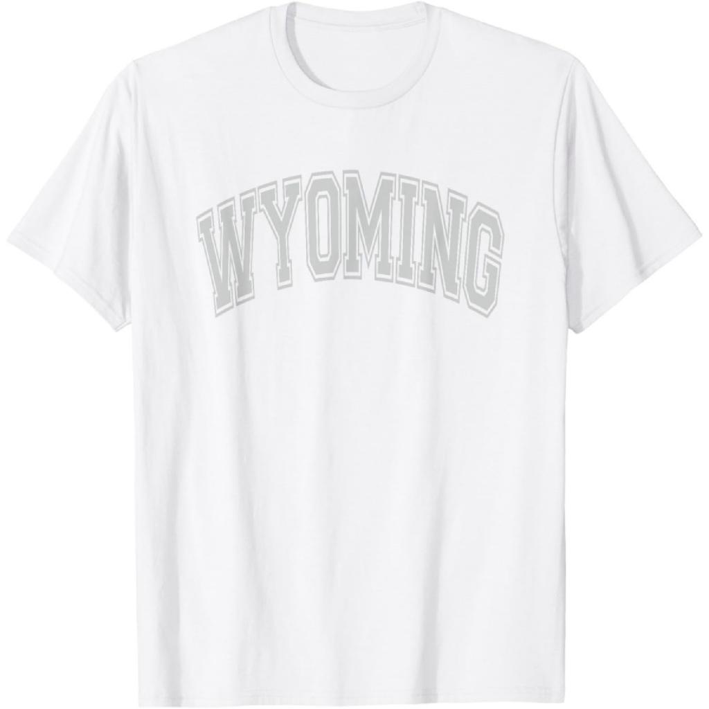 Wyoming Arched Style Text White with Gray Print T-Shirt