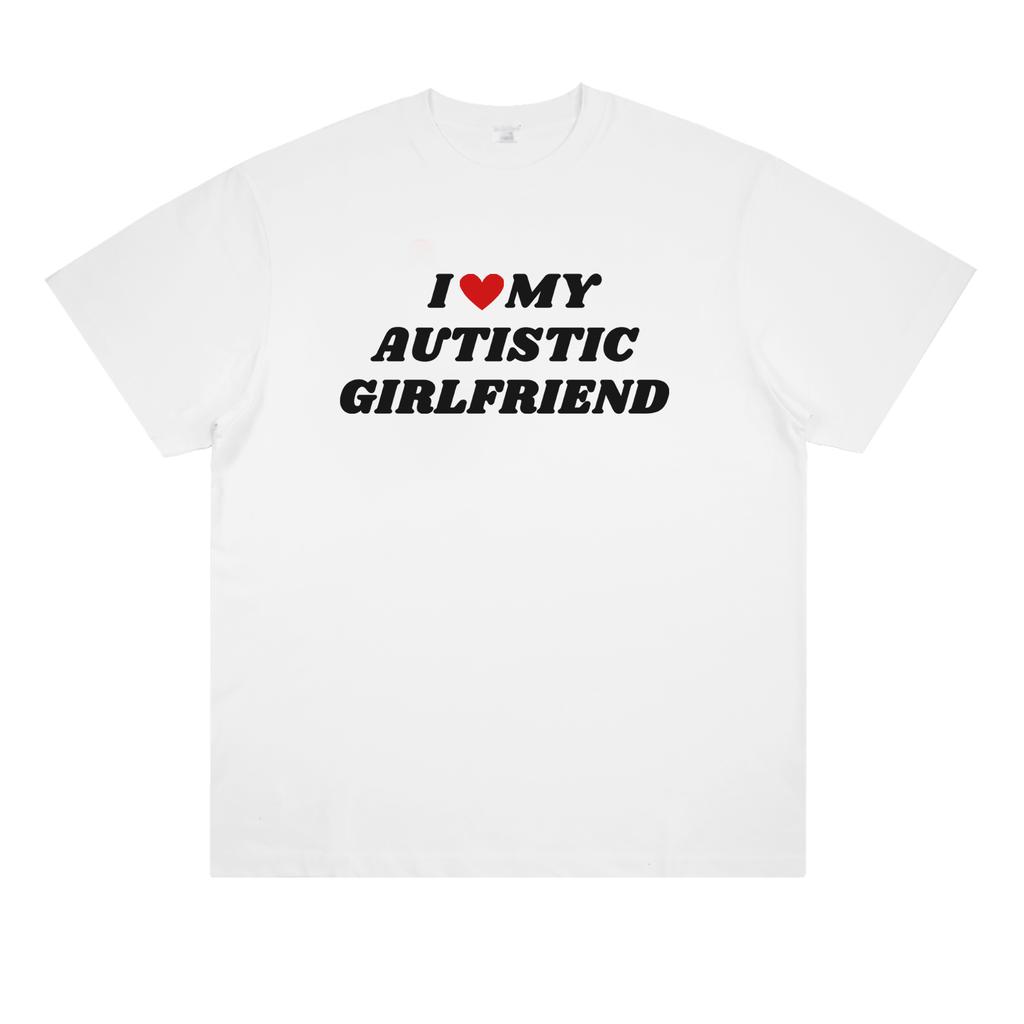 I LOVE AUTISTIC GIRLFRIEND American slogan printed cotton shortsleeved personalized couple tshirt