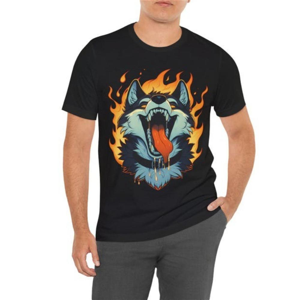 Yiff in Hell Furry Shirt Fursona Fandom Tshirt Hot Furry Wolf Printed TShirt Modern and Trendy Mens Tee Cosplay Role Play Tops