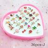 12/36 Pcs Adjustable Alloy Baby Girl Rings with Heart Shaped Box Cartoon Mix Finger Jewellery Rings Kid Girls Toys Random Color
