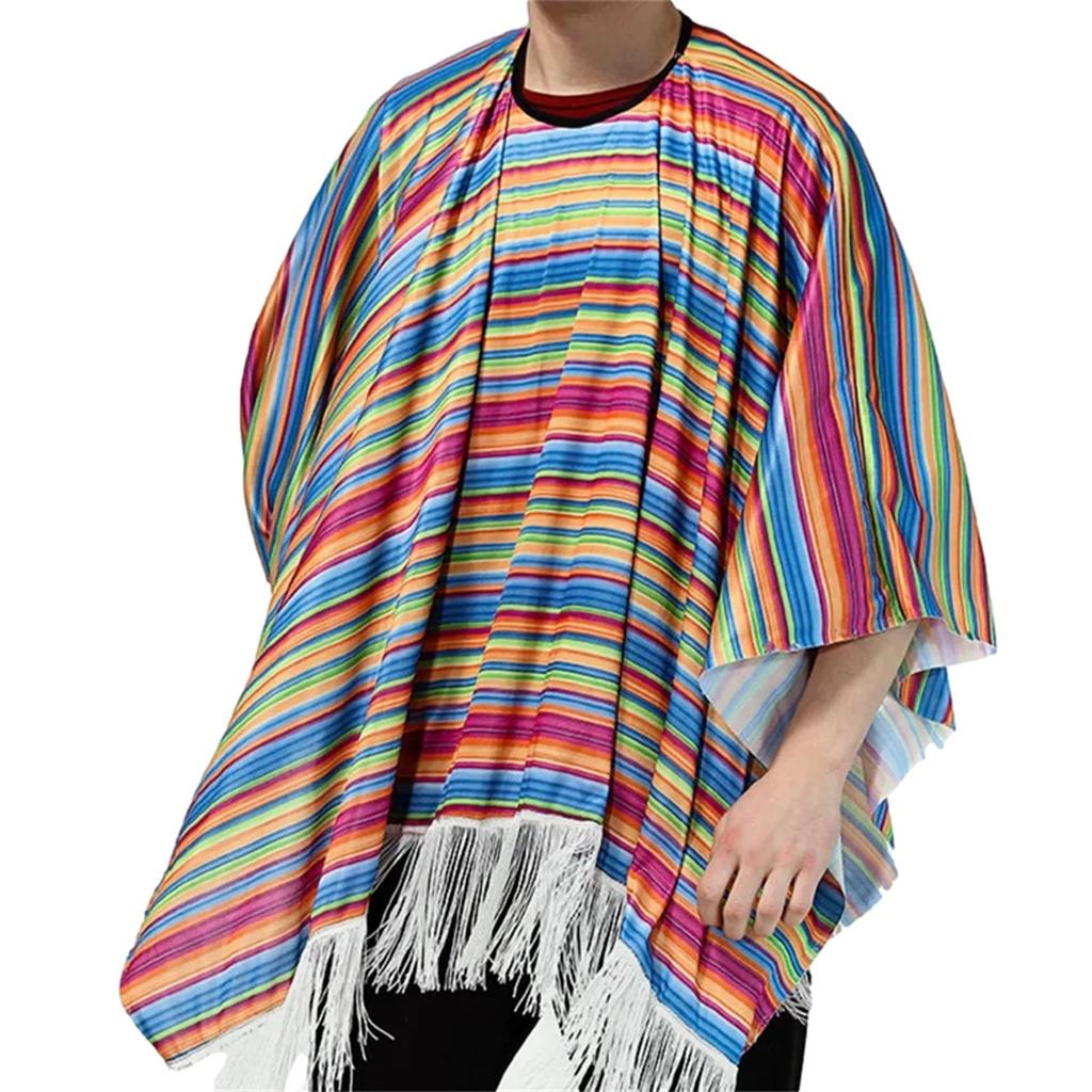NOELAMOUR Mexican Men's Rainbow Poncho Costume Set, Traditional Costume for Cosplay (Design A)