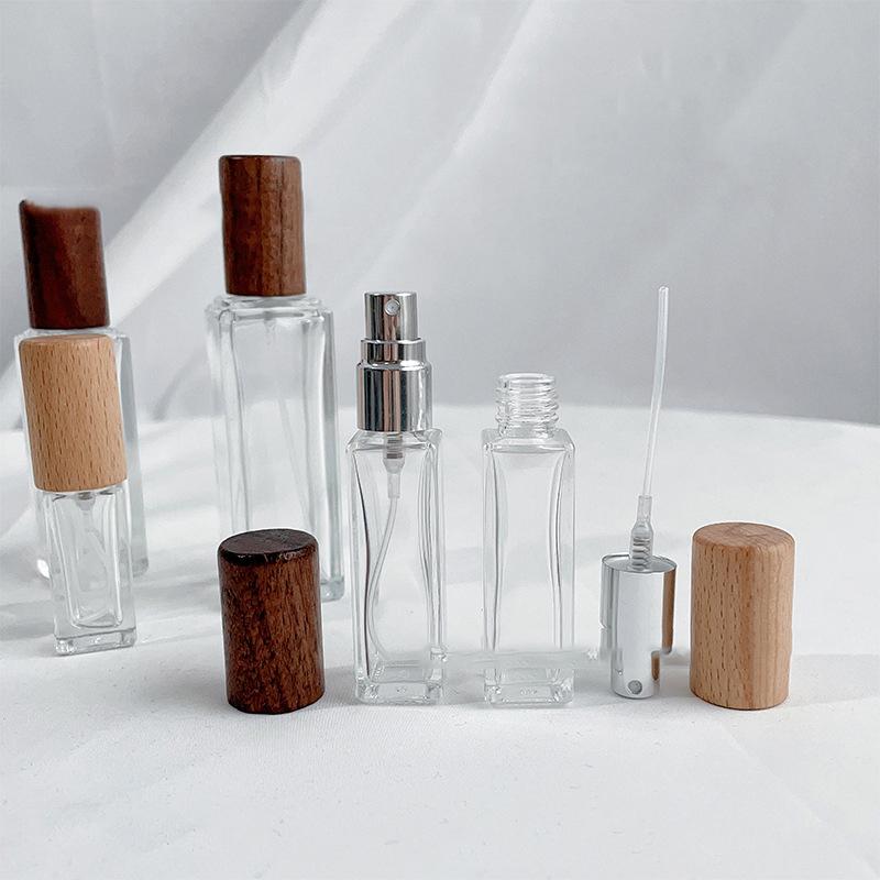 5/10/20/30ml Portable Glass Spray Bottle Beech Lid Perfume Bottle Walnut Cover Empty Bottle Sample Vial Cosmetic Container