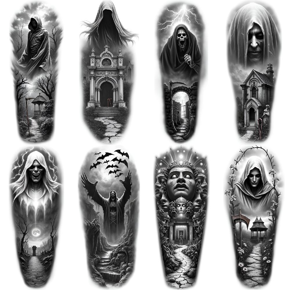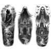 3pcs Temporary Tattoo Black And Grey Realism Hooded Figure Clock Tower Tree For Adults Thighs Men