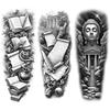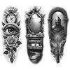 3pcs Temporary Tattoo Black And Grey Realism Buddha Statue And Temple Knight And Sword For Men Women Adults