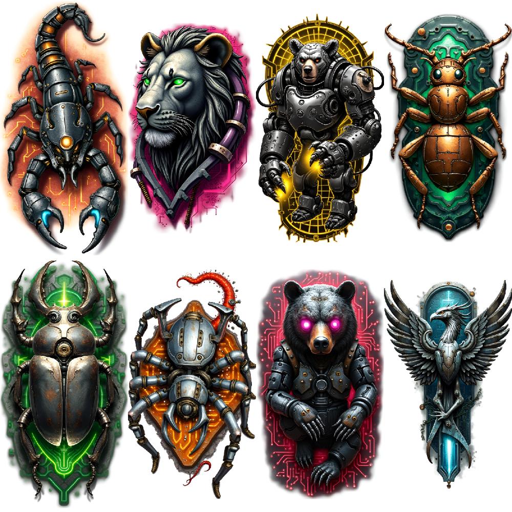 1. Animals (tigers, etc.) - black and white realism, color realism, watercolor, geometry, American tradition, cartoon, mandala, totem