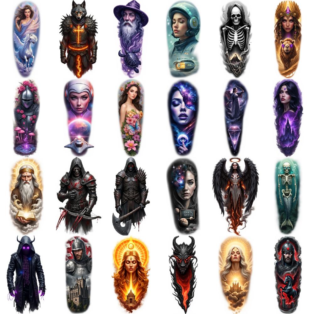 9pcs Temporary Tattoo Waterproof Long-lasting Body Stickers Dark Angel Wisdom Wizard Pegasus For Shoulders Thighs Male