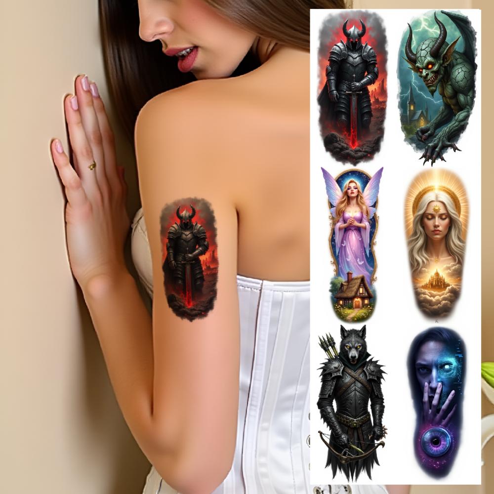 9pcs Temporary Tattoo Realistic Temporary Tattoos Grim Reaper Astronaut Hooded Archer For Adult Back Thighs
