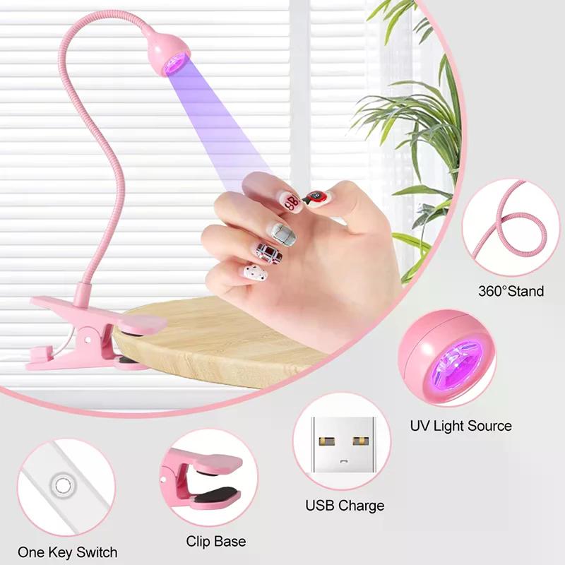Nail LED UV Lamp For Drying Gel Nails Polish Clip-On Flexible Desk Mini Portable USB Nail Lamp UV Light Dryer For Manicure Salon