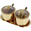 Stainless Steel Sugar Bowl Set with Glass Lid Spoon and Tray Rustproof Seasoning Box Round Condiment Pots Polished Shiny Sugar