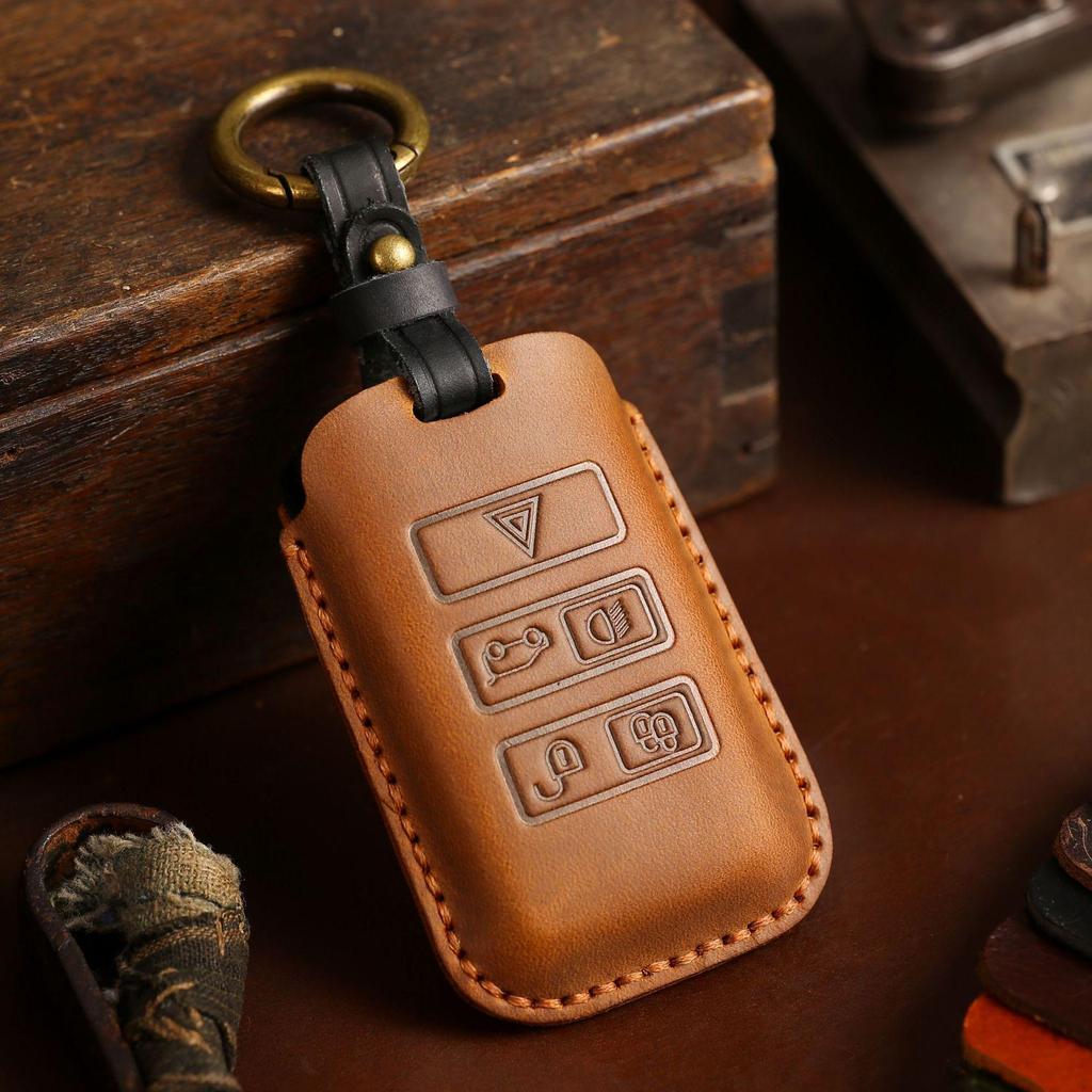 Handmade Genuine Leather Key Cover & Chain for Land Rover, Range Rover, Discovery 5, Jaguar - Crazy Horse Leather