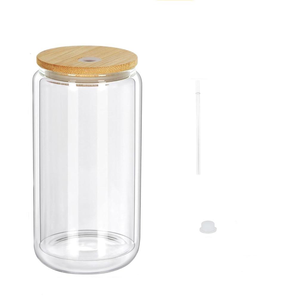 NEW Bamboo Lids Mason Jar Cups 16oz(450ml) Capacity Break-Resistant Drinking Tumbler Double Layers Water Bottles Wedding Party