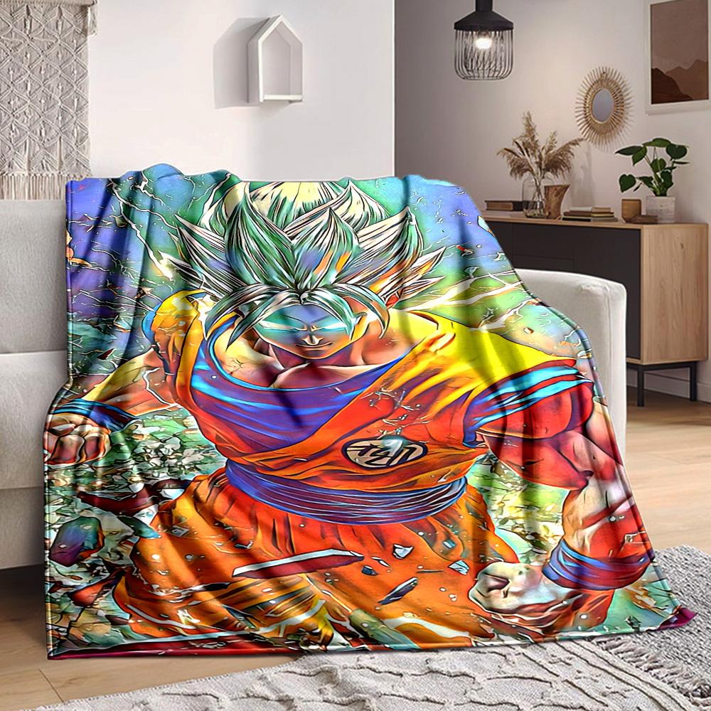 1pc Goku, Saiyan Blanket Lightweight Flannel Blanket Throw Blanket For Sofa, Bed, Travel, Camping, Livingroom, Office, Couch