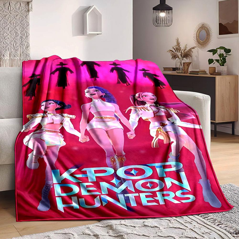 1pc Huntrix, K POP, DEMON Flannel Blanket [Cozy Throw Blanket] For Sofa, Bed, Travel, Camping, Livingroom, Office, Couch, Chair, And Bed
