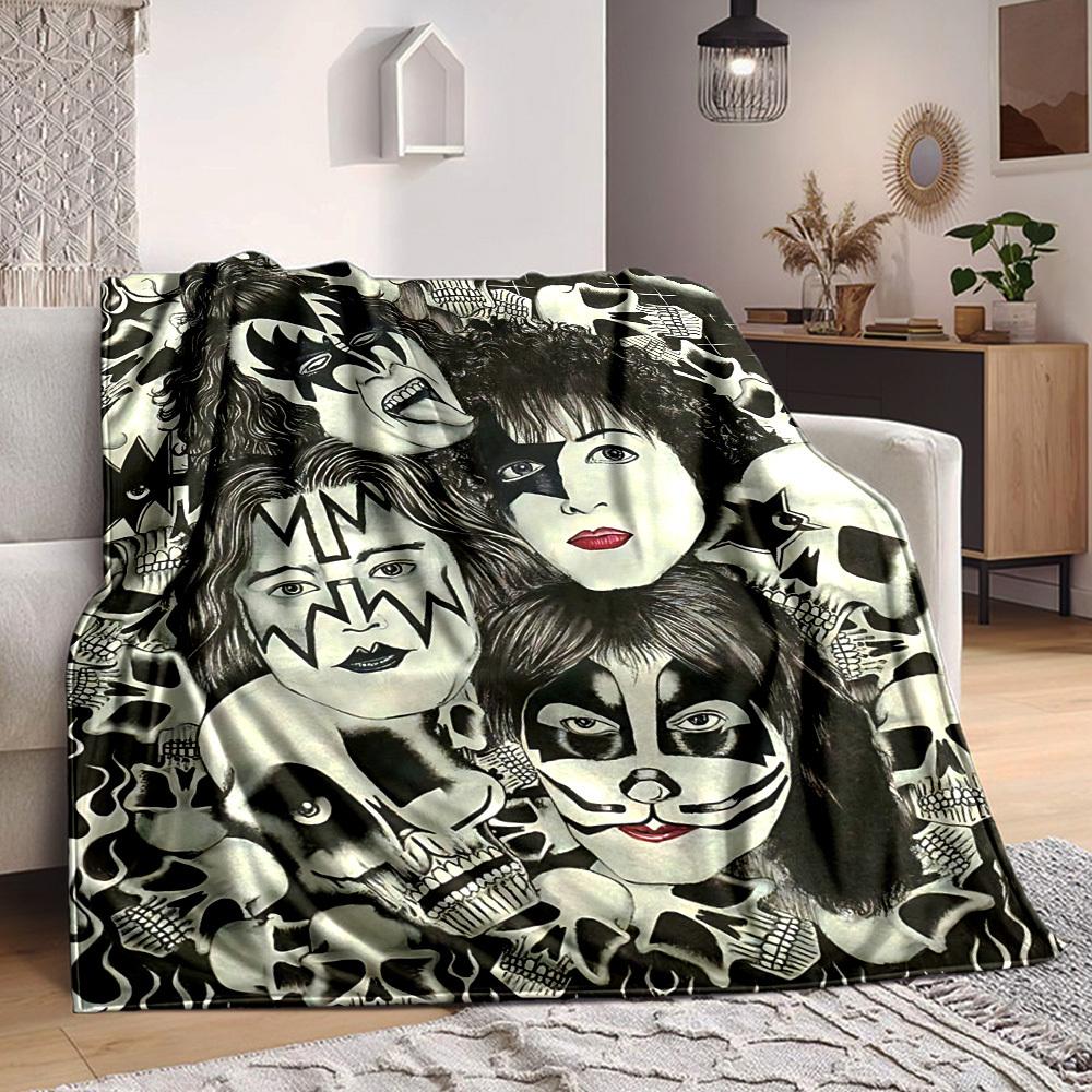 1pc Kiss Band Merchandise Flannel Blanket [Cozy Throw Blanket] For Sofa, Bed, Travel, Camping, Livingroom, Office, Couch, Chair, And Bed