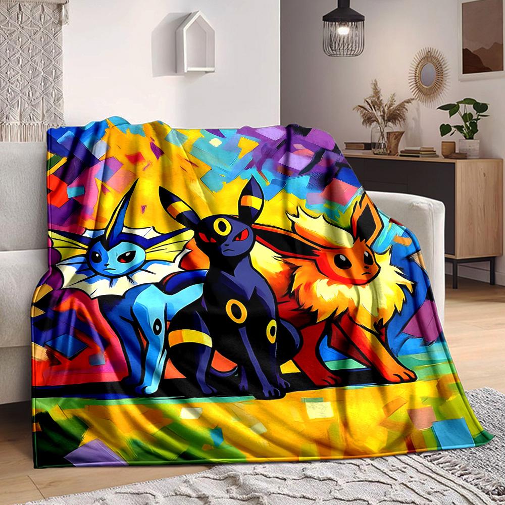 1pc Eevee Evolution Trio, Pokémon Blanket Lightweight Flannel Blanket Throw Blanket For Sofa, Bed, Travel, Camping, Livingroom, Office, Couch