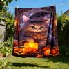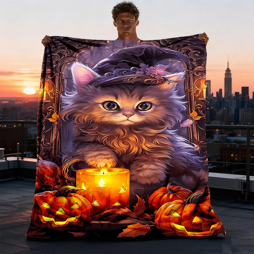 1pc Witch Hat Kitty Art Throw Blanket Polyester Fiber, Lightweight Flannel, Soft & Warm, All Season Use for Outdoor, Camping Digital Print