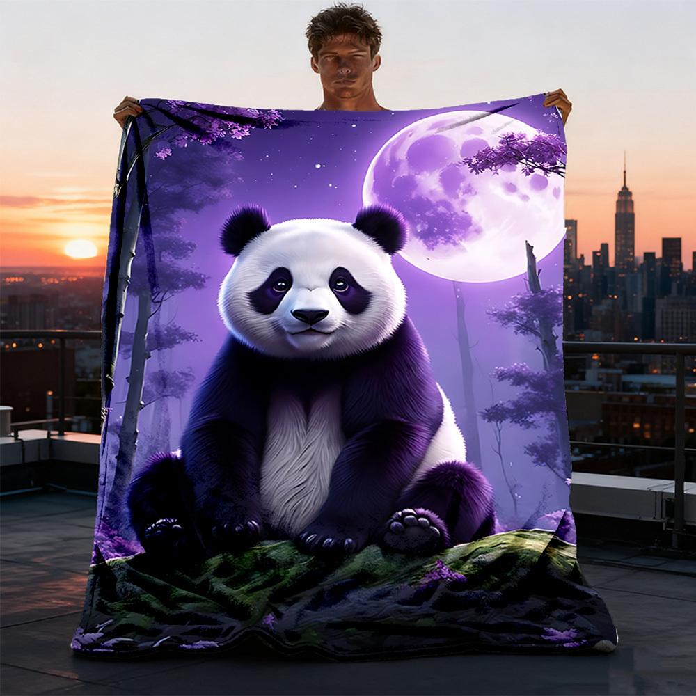 1pc Panda Moon Night Throw Blanket Polyester Fiber, Lightweight Flannel, Soft & Warm, All Season Use for Outdoor, Camping Digital Print