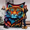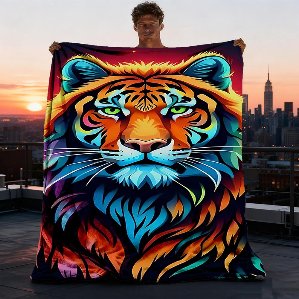 1pc Colorful Tiger Design Throw Blanket Polyester Fiber, Lightweight Flannel, Soft & Warm, All Season Use for Outdoor, Camping Digital Print