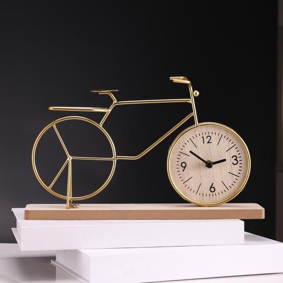 Its creative bicycle shape cleverly integrates the clock mechanism into an eye-catching art piece, breaking away from traditional designs. The stable wooden base ensures secure placement on desks, shelves, or entryways without tipping. Easy to install and operate with one AA battery (not included), this clock offers clear, intuitive time reading. A perfect blend of practicality and style to enhance any room's ambiance.