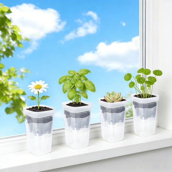 Deep Water Reservoir: Each pot holds up to 150ml (5 fl oz) of water in the external reservoir. Clear measurement markings let you monitor water levels at a glance, ensuring seeds never dry out. The self-leveling wick system delivers water directly to tubers as needed, reducing daily watering frequency—perfect for busy plant lovers or vacations.