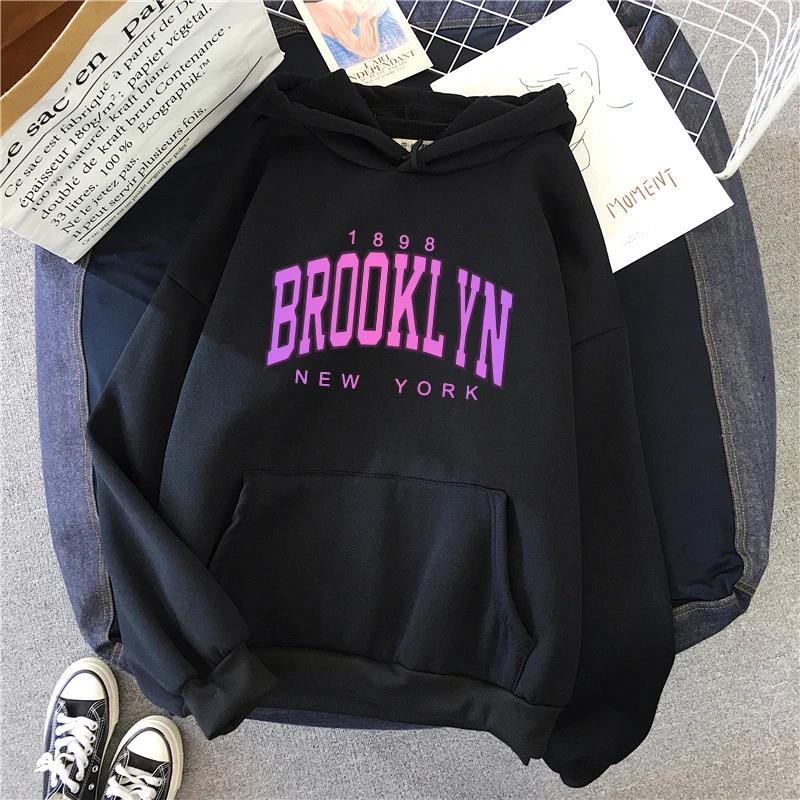 Fashion Women's Sweatshirts High Quality Brooklyn Print Hooded Long Sleeve Pullover City Vibe Girls Daily Casual Hoodie