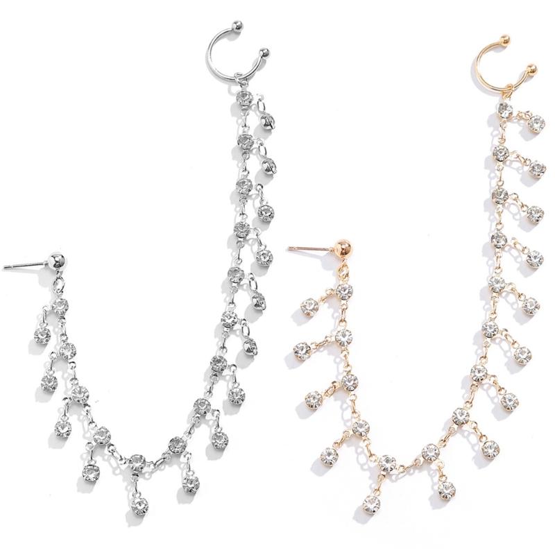 Elegant Rhinestones Fringe Chain Ear Stud Nose Clip Elegant Fake Nose Clip Jewelry Punk Earrings Chain for Women Girl