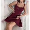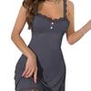 Womens Sexy Ribbed Lace Trim Nightgown Mini Sleep Dress Bodycon Spaghetti Strap Button Front Lingerie Loungewear Purple New Hot