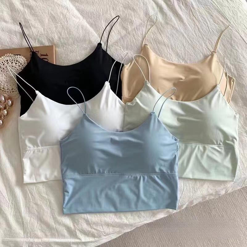 Kadın Kırpma Üstleri Seksi Düz Renk Kaşkorse Buz Ipek Tüp Üst Dikişsiz Spor Tank Top Kablosuz Iç Çamaşırı Yastıklı Sütyen Bralette Yelek