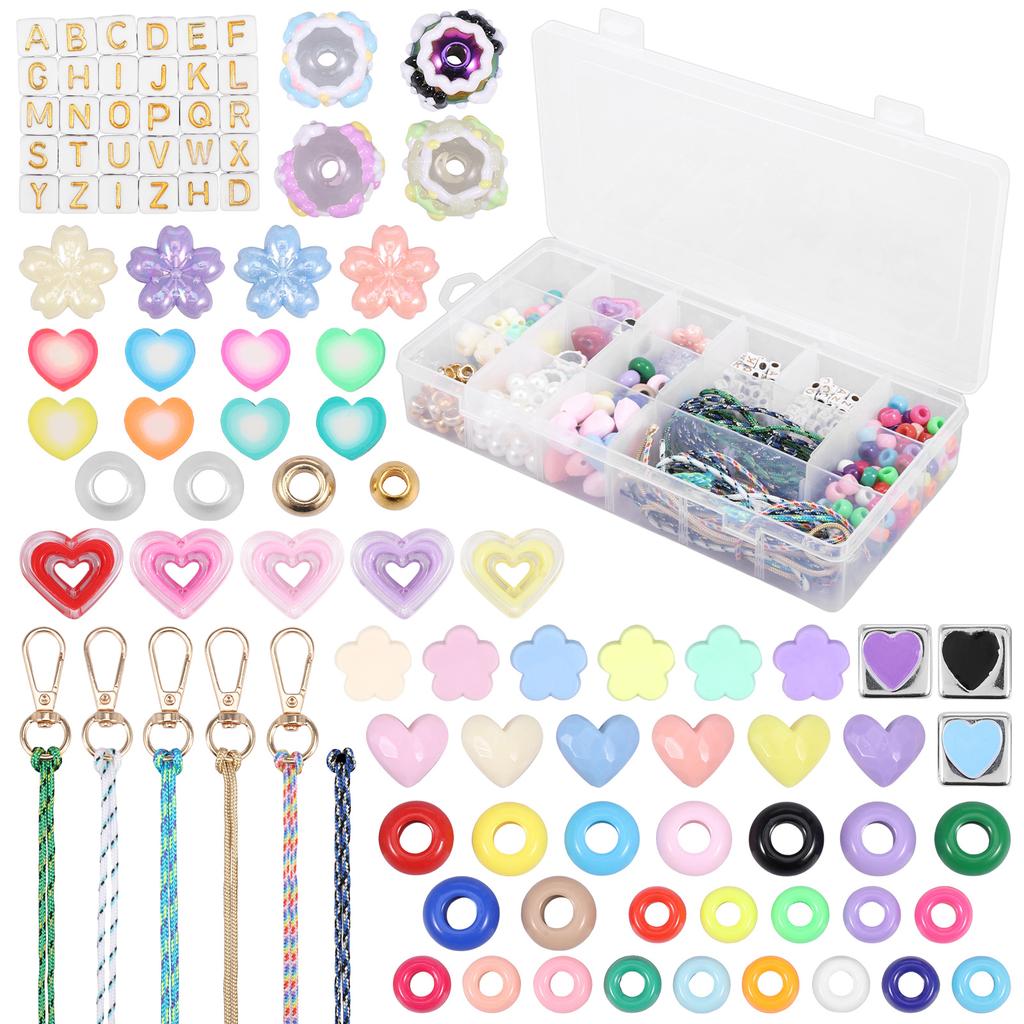 421 Pcs Beaded Keychain Making Kit DIY Key Chain Charm Acrylic Heart Flower Star Letter Bag Beads Jewelry Making Kit for Women